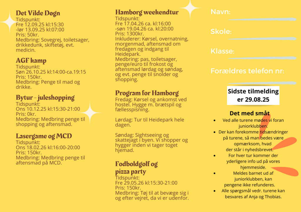 Vi gør opmærksom på, at der kommer yderligere information til turene, når vi kommer tættere på datoen.